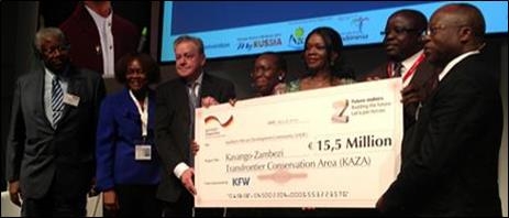 On 8 March 2013, State Secretary Hans-Jürgen Beerfeltz of the German Federal Ministry for Economic Cooperation and Development (BMZ) handed a symbolic cheque to the amount of €15.5 million to the Deputy Executive Secretary of the Southern African Development Community (SADC), Mr João Caholo, in presence of the government Ministers of the five countries partnering in the KAZA Transfrontier Conservation Area (TFCA).