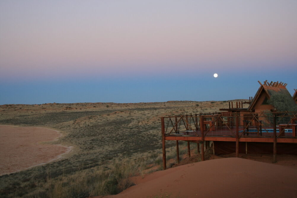 !Xaus Lodge, overlooking a salt pan in the arid Kalahari wilderness, is owned by the Khomani San (Bushmen) and Mier communities. ©Peace Parks Foundation