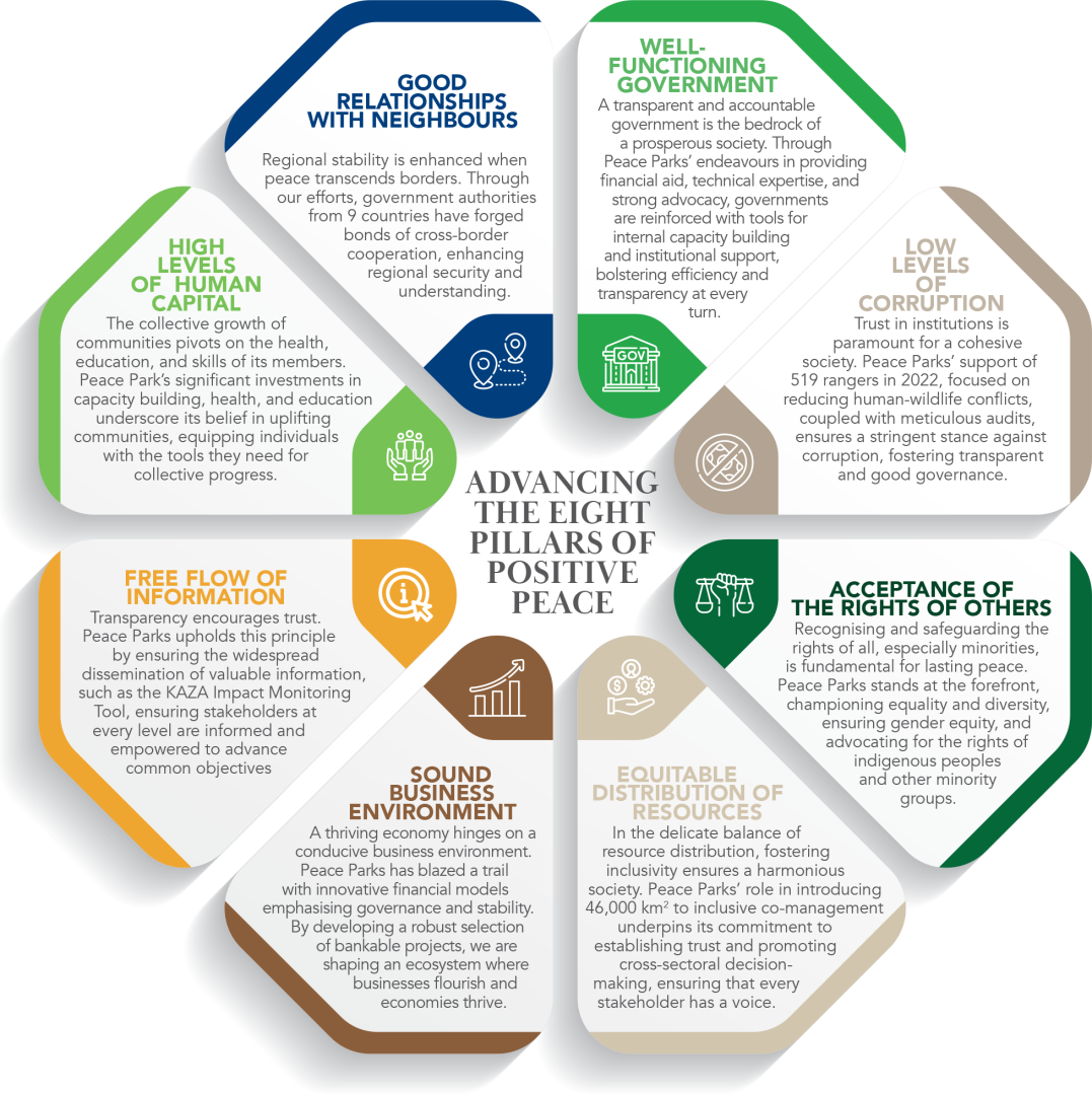 THE PEACE PARKS FRAMEWORK IS BASED UPON THREE GLOBAL FRAMEWORKS Taking all of these global frameworks into account, Peace Parks works tirelessly towards nine impact areas