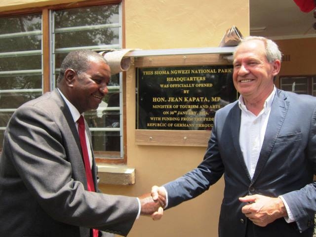 Deputy Minister Ngoma praised the German government for setting up offices in the park and said that it would assist staff in managing the park and protecting its wildlife. Mr Stephan Neu said that his government was pleased to be associated with Kavango Zambezi (KAZA) TFCA and to cooperate with the Zambian government on developing Sioma Ngwezi National Park. Induna Inanduko thanked the Zambian government for recognising the role that traditional leaders are allowed to play in the management of wildlife. He said that well-managed wildlife is key in the creation of employment and reduces poverty in communities.