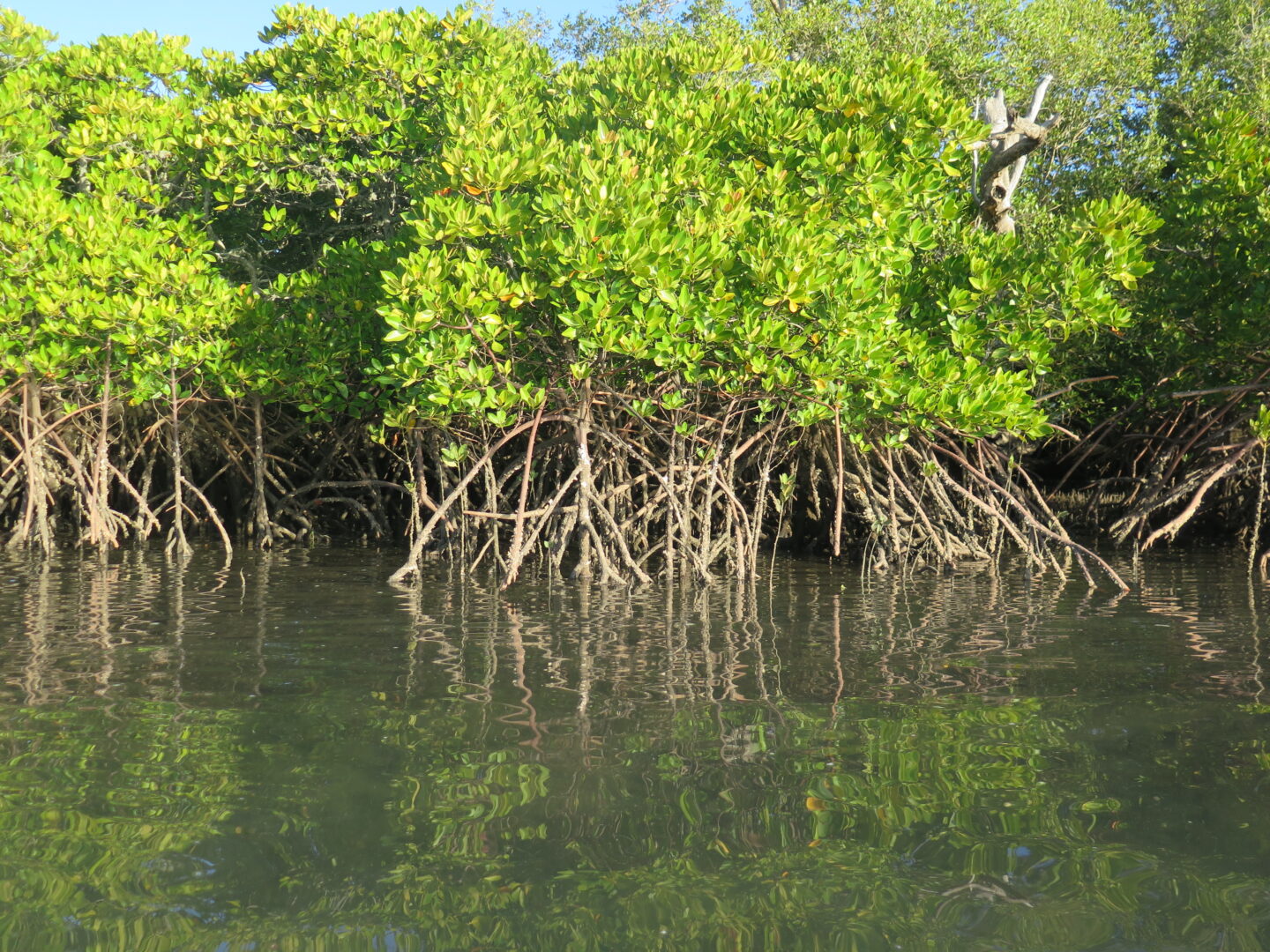 The roots of the Red Mangrove provide a neat protective network that small fish can hide between. This is a fast-growing pioneer species that establishes very well in unstable soils, capturing sediments and favouring the growth of other species such as the Black Mangrove. It is a very useful species in the fight against rising sea levels. © Peace Parks Foundation